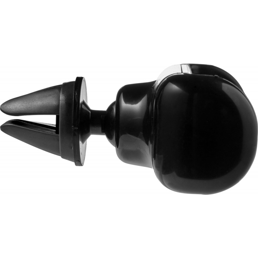 Autós telefontartó. A műszerfal szellőzőjéhez csatlakoztatható és 360 fokban elforgatható. Kihúzható oldalakkal a különböző okostelefonokhoz. ABS, PVC.