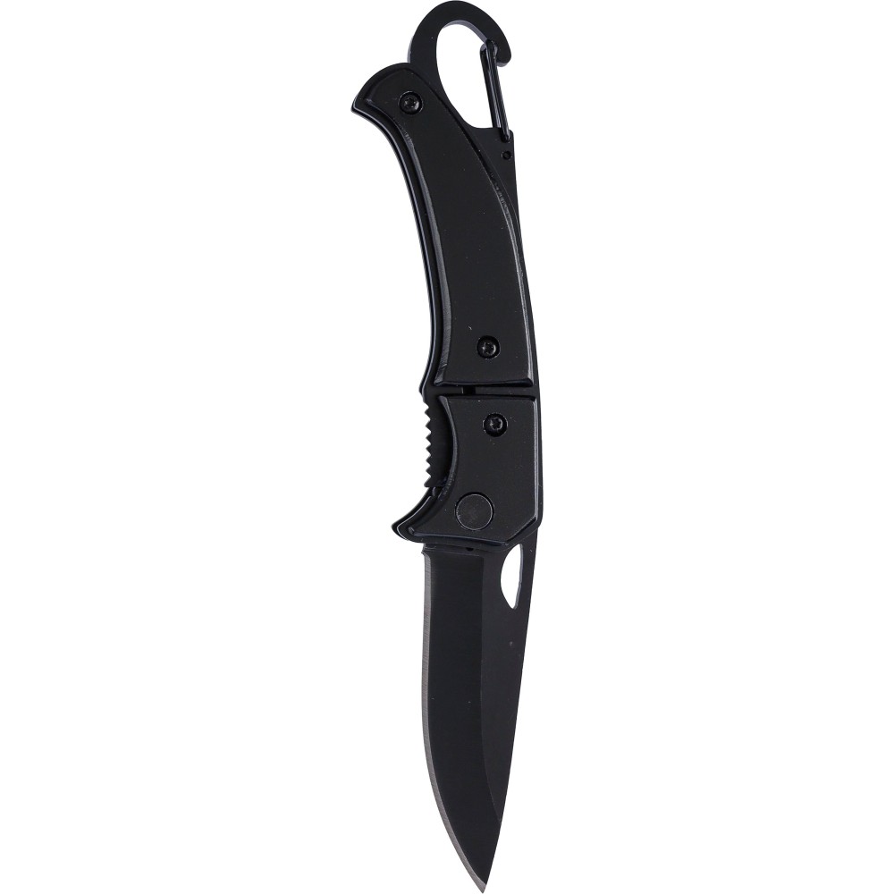 Zsebkés biztonsági zárral, alumínium nyéllel és fém karabinerrel. Figyelmeztetés: a karabiner nem alkalmas hegymászásra. Egyenként barna kartondobozba csomagolva. Anyaga: rozsdamentes acél.