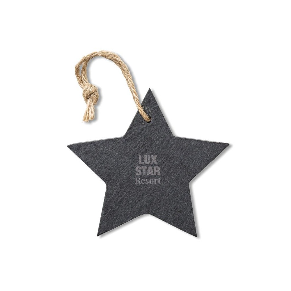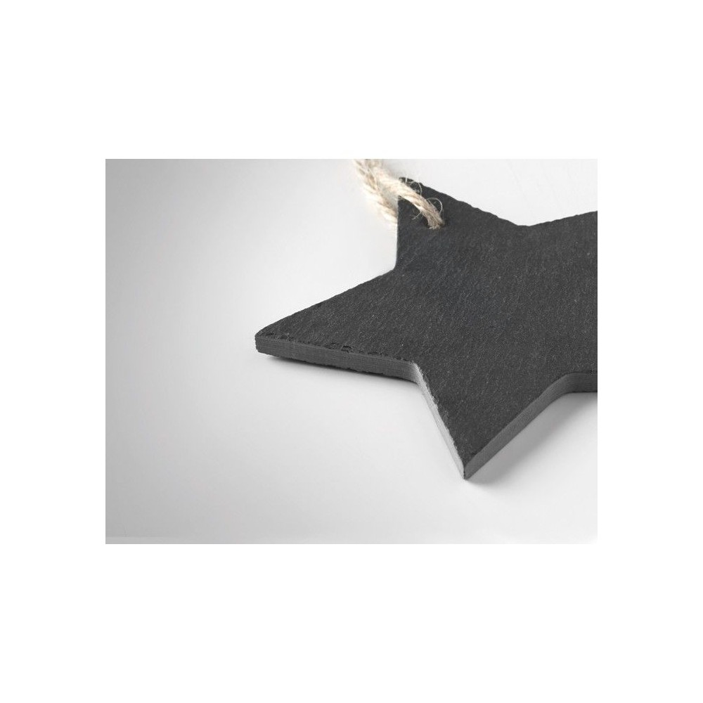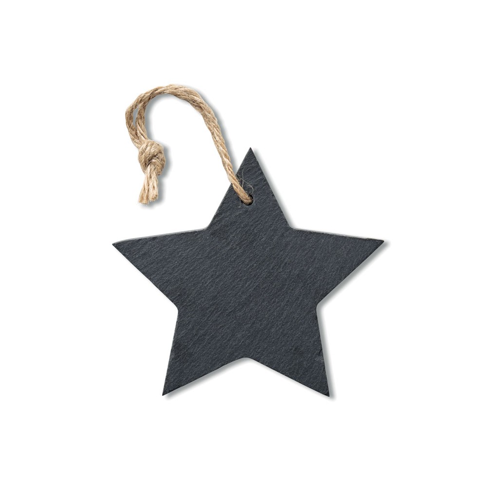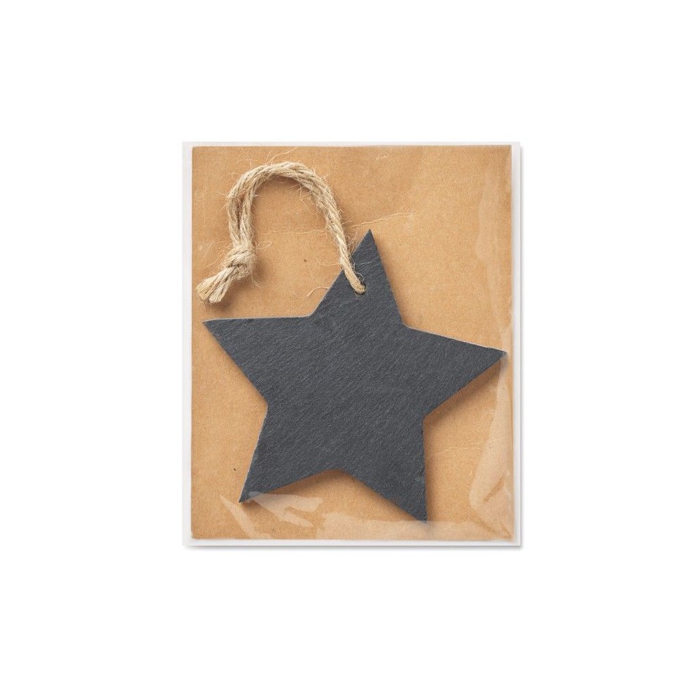 Csillag alakú palalemez karácsonyfadísz akasztózsinórral.