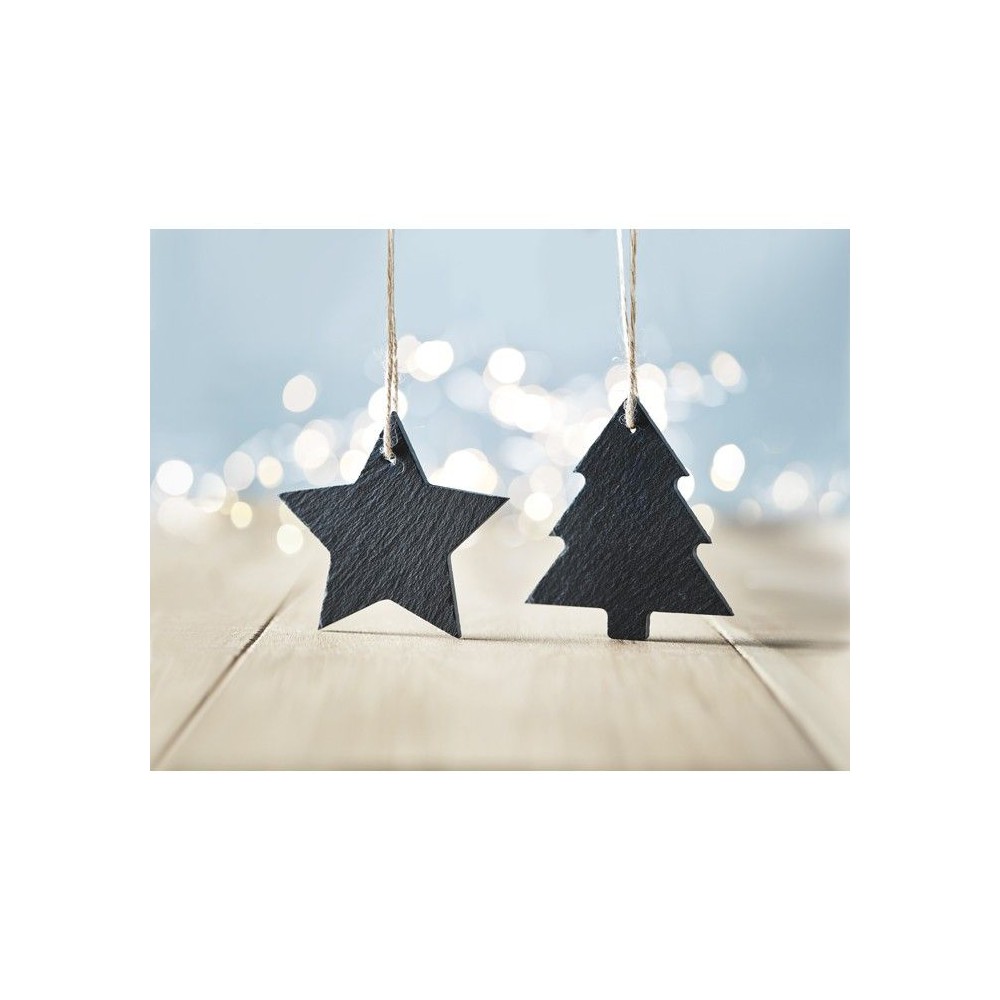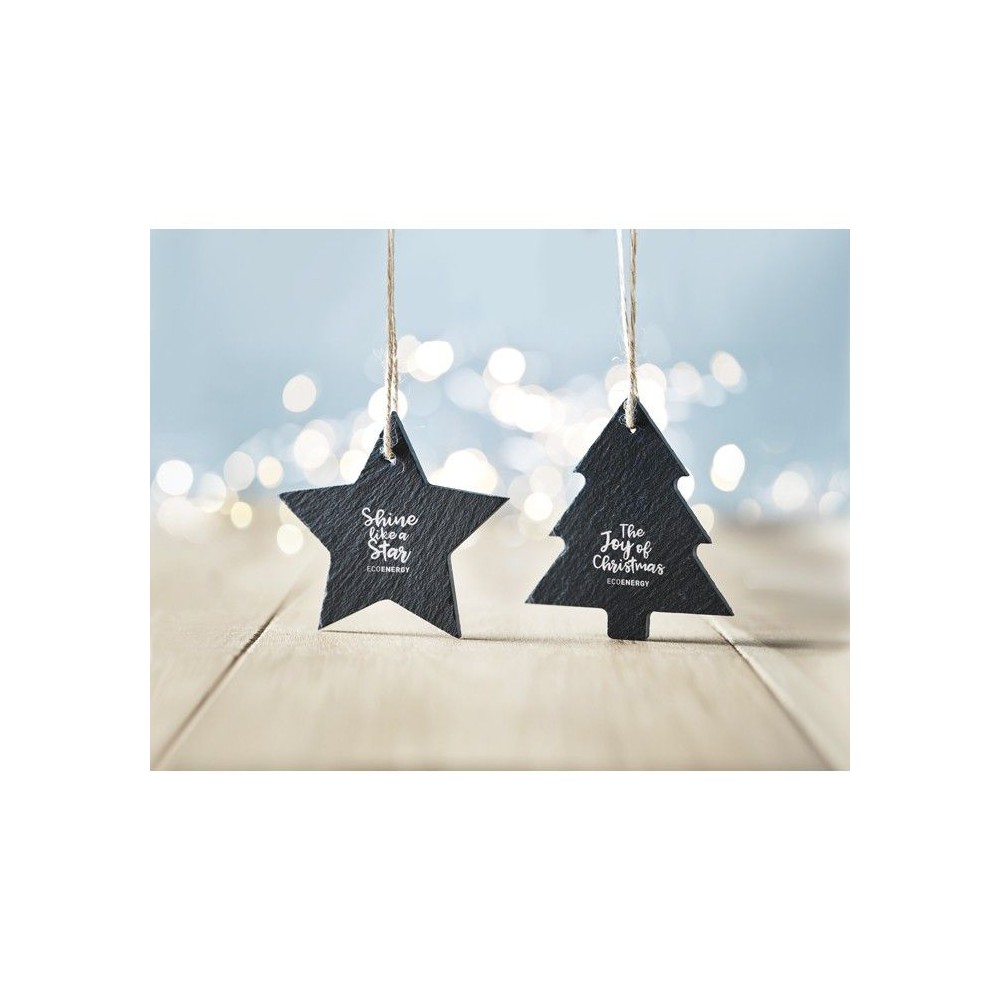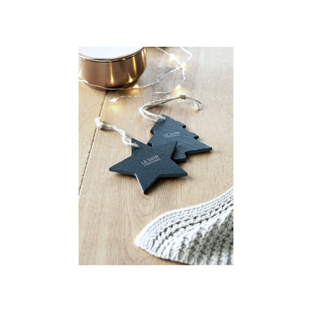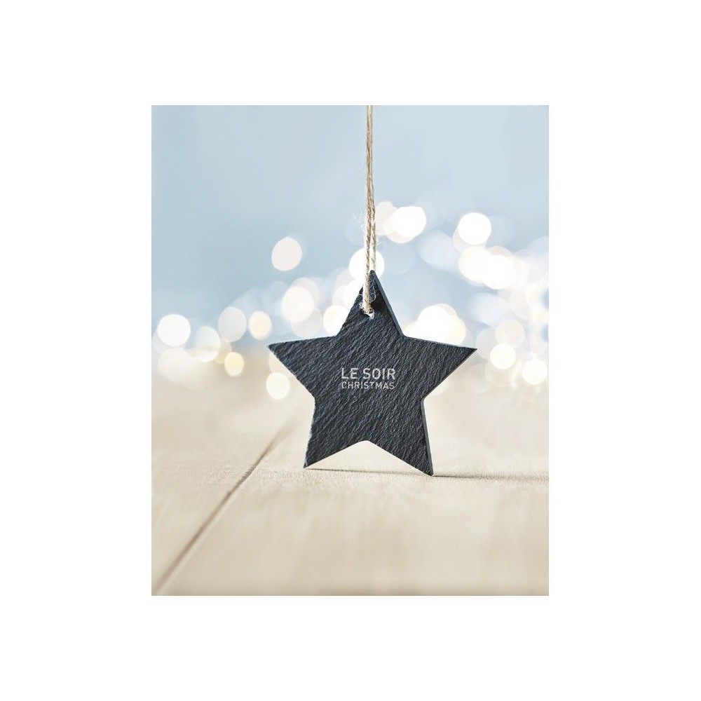 Csillag alakú palalemez karácsonyfadísz akasztózsinórral.