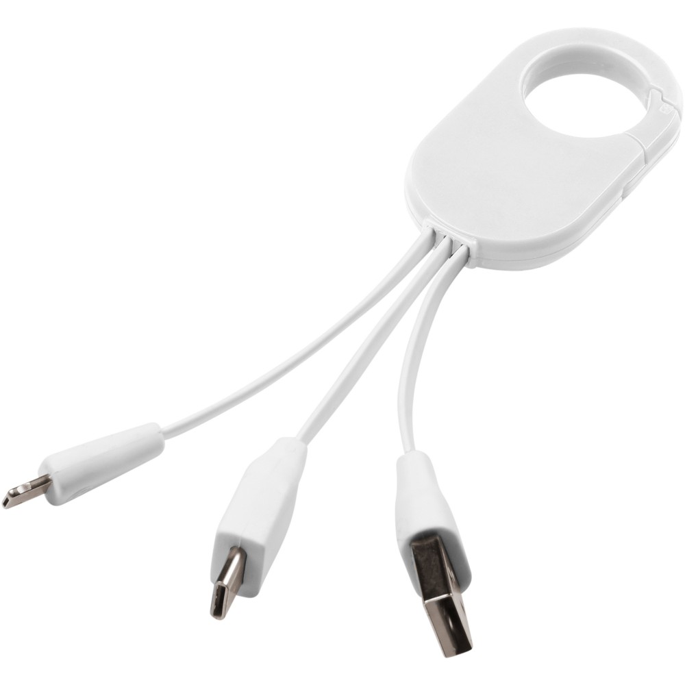 Troop 3 az 1-ben töltőkábel egy C típusú USB csatlakozóval és egy duplakompatibilis csatlakozóval, amely mind az Apple® iOS, mind az Android készülékekhez megfelelő. Karabinerrel rögzíthető.