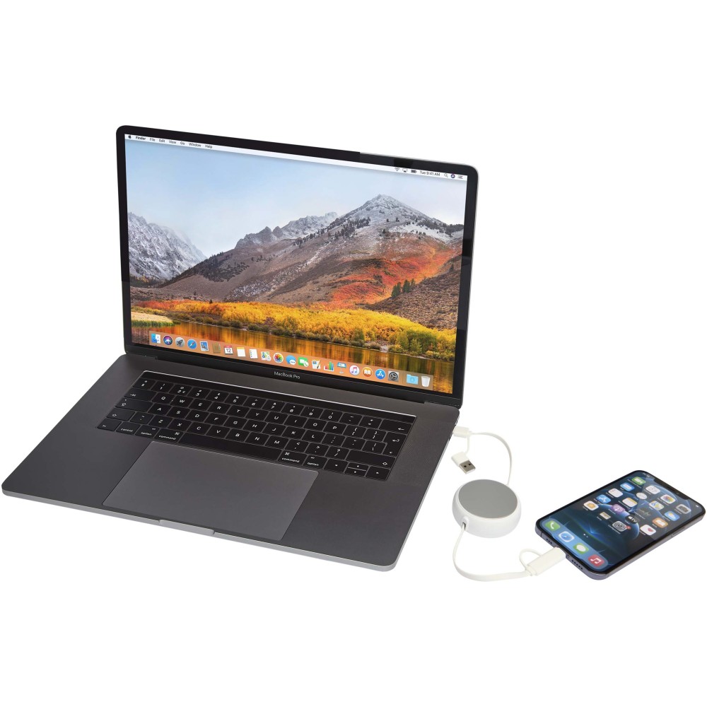 Az Alasia 5 az 1-ben visszahúzható adat- és 45W-os gyorstöltő kábel újrahasznosított műanyagból készült, tartós és stílusos újrahasznosított alumínium elemmel, amely fenntarthatóbb és elegáns töltési megoldást kínál. A kábel USB-A és Type-C bemeneti csatlakozókat, valamint egy 3 az 1-ben Type-C és Lightning/Micro USB kombinált kimeneti csatlakozót tartalmaz. Az USB-C?USB-C kapcsolat maximális teljesítménye 45W, az USB-A?USB-C kapcsolaté 24W, míg az összes többi kapcsolat maximális teljesítménye 15W. Kompatibilis a CarPlay és az Android Auto rendszerekkel, és beépített telefontartóval is rendelkezik a további kényelem érdekében. Akár otthon, az irodában vagy útközben használod, az Alasia kábel teljesítményt és stílust garantál. Kábel hossza: 100 cm.