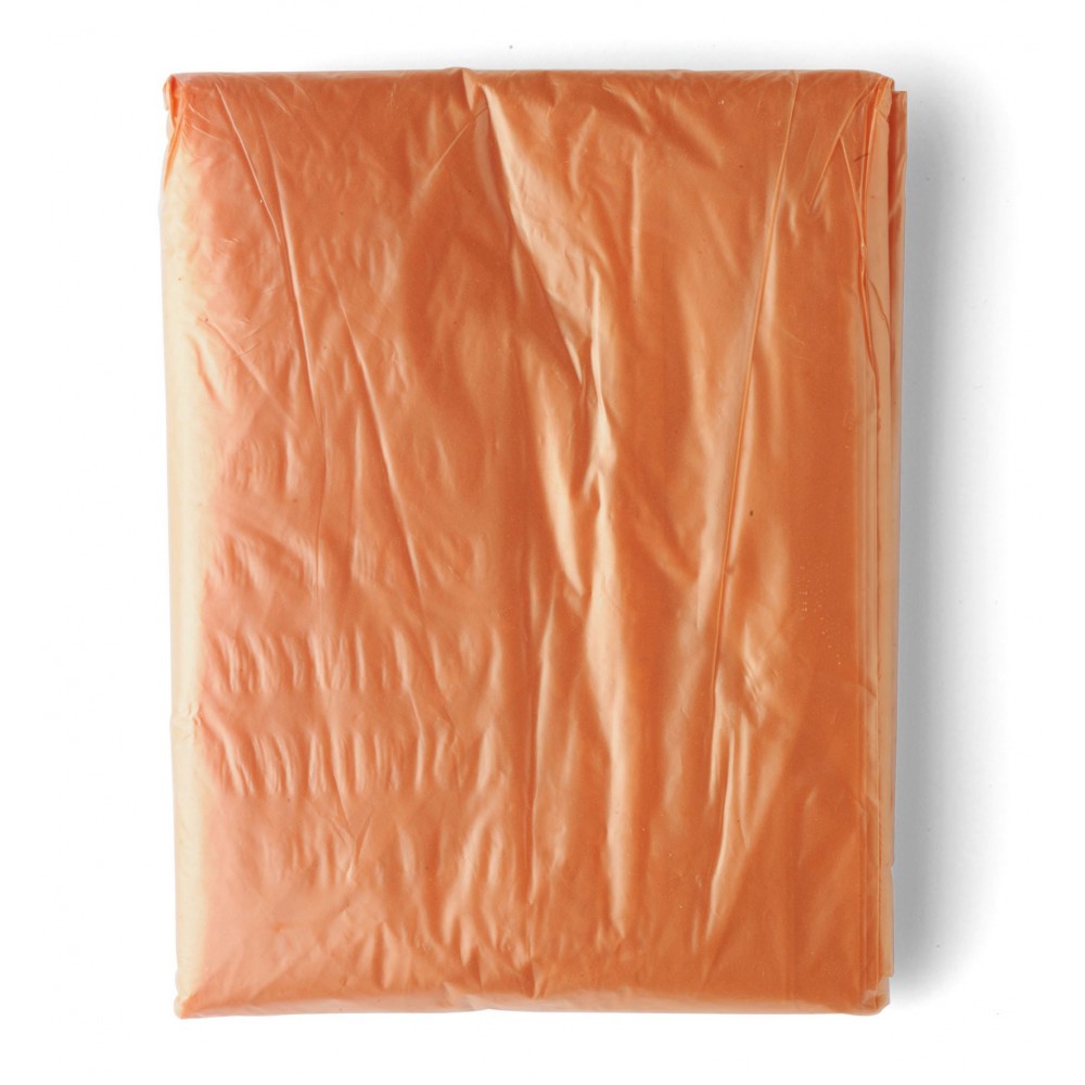 Poncsó szabású esőkabát. Oldalán perforált, bő ujjkivágással. Áttetsző vékony PVC, anyaga emblémázásra nem alkalmas. (Egyedi feliratok az esőkabát tokjában elhelyezhető papírlapra készíthetők.) Kiterített mérete: 126*102 cm.