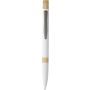 Golyóstoll újrahasznosított alumíniumból, gumírozott bevonattal, bambusz nyomógombbal és bambusz gyűrűvel a tolltesten. Kék tollbetéttel. A tollhegy vastagsága 1.0 mm, íráshossz: kb. 800 méter. Az újrahasznosított anyagra utaló logó a tollra van gravírozva.