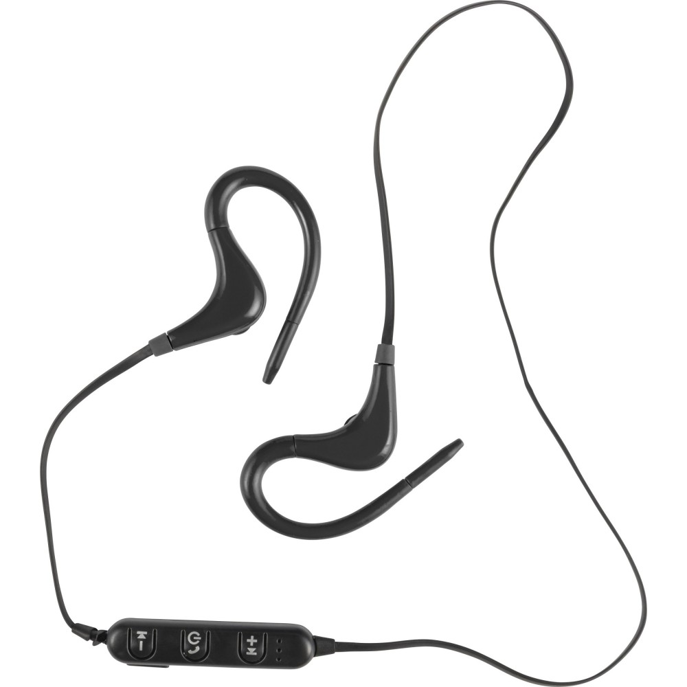Vezeték nélküli fülhallgató, távvezérlővel és mikrofonnal a kihangosított hívásokhoz. A kábel hossza 55 cm. Csomagolás cipzáras tokban. A mikro USB töltőkábelt tartalmazza. ABS műanyag.
