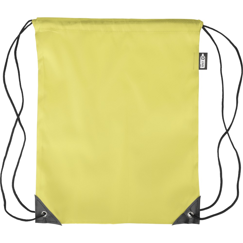 Tornazsák 210D poliészter anyagból, fekete PU sarokerősítéssel az elején, és belső varrással. Fekete nylon húzózsinórral, egy rekesszel. Űrtartalom: 5 liter, teherbíró képesség: 7 kg. rPET címkét tartalmaz.