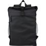 600D rPET poliészter roll-top hátizsák. PU bevonat teszi vízlepergetővé. Rejtett cipzáras első zsebbel, hálós oldalzsebekkel, 15 -es laptop számára kialakított tárolórésszel, 5 tárolórekesszel, állítható vállpánttal. Kapacitása 25 liter, teherbírása 15 kg. Oldalán rPET címkével.