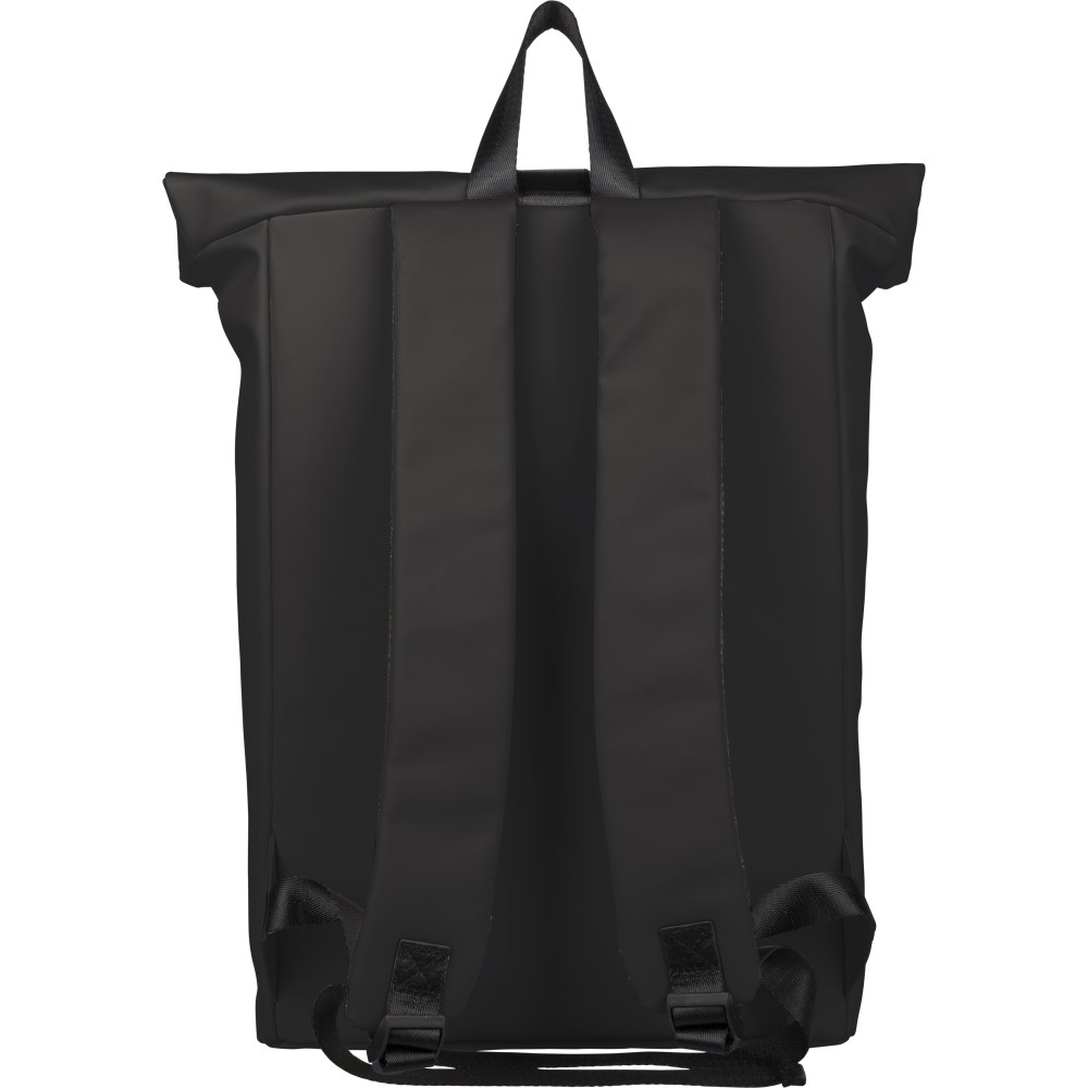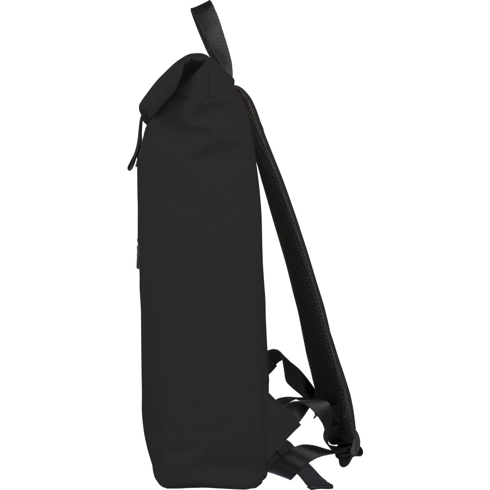 Újrahasznosított PU anyagból készült hátizsák 19 literes űrtartalommal, rolltop záródással és tépőzáras rögzítéssel. Elülső cipzáras zsebbel, 16 hüvelykes laptoprekesszel, 210D újrahasznosított béléssel, állítható szellőző vállpántokkal és felső fogantyúval rendelkezik. A belső címkén újrahasznosított alapanyagra utaló jelölés található.