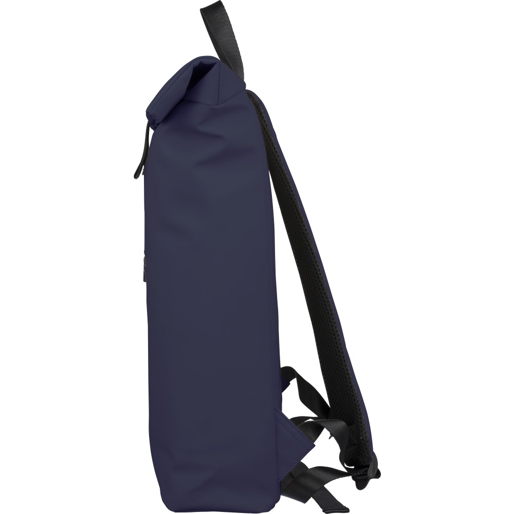Újrahasznosított PU anyagból készült hátizsák 19 literes űrtartalommal, rolltop záródással és tépőzáras rögzítéssel. Elülső cipzáras zsebbel, 16 hüvelykes laptoprekesszel, 210D újrahasznosított béléssel, állítható szellőző vállpántokkal és felső fogantyúval rendelkezik. A belső címkén újrahasznosított alapanyagra utaló jelölés található.