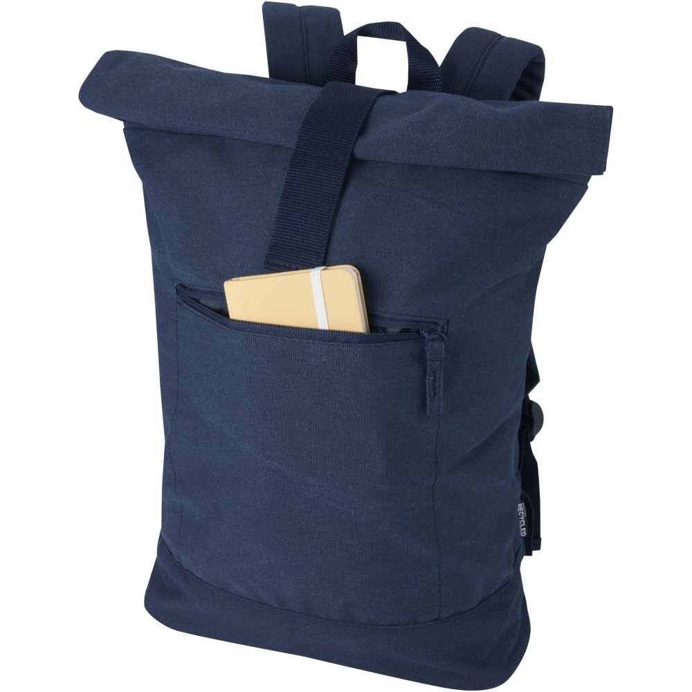 A Recanvas roll-top hátizsák GRS tanúsítvánnyal rendelkező, újrahasznosított és vízlepergető vászonból készült, színben harmonizáló RPET béléssel. A 16 literes űrtartalmú táska egy párnázott rekesszel rendelkezik a legfeljebb 14"-os laptopok számára, emellett egy cipzáras elülső zsebbel, légáteresztő hálós hátrésszel és a kényelmet szolgáló állítható vállpántokkal van felszerelve. A bővíthető roll-top záródás lehetővé teszi a tárolókapacitás növelését igény szerint, ami ideálissá teszi ingázáshoz, utazáshoz vagy szabadtéri kalandokhoz.