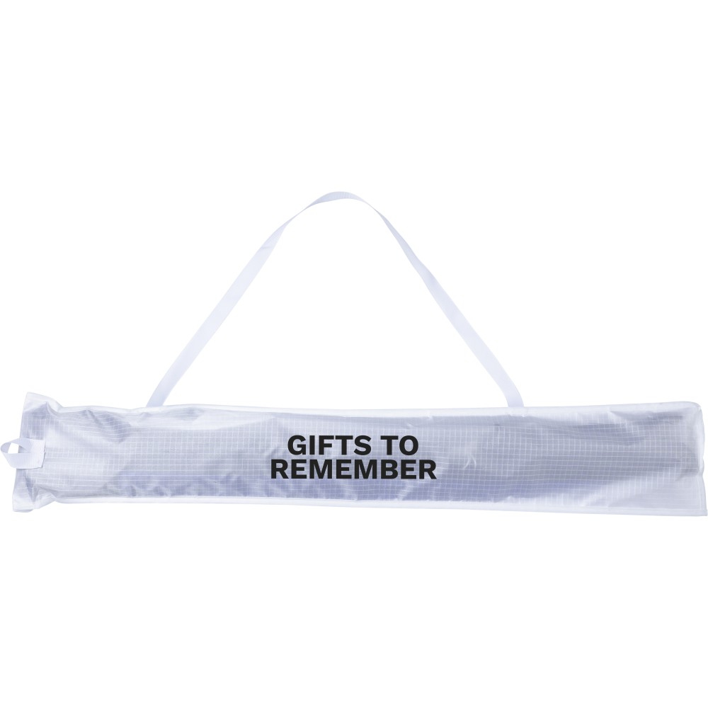 210T ripstop poliészter sárkány. Szélessége 160 cm. Két műanyag fogantyút tartalmaz. Vállpánttal rendelkező hordtáskába csomagolva.