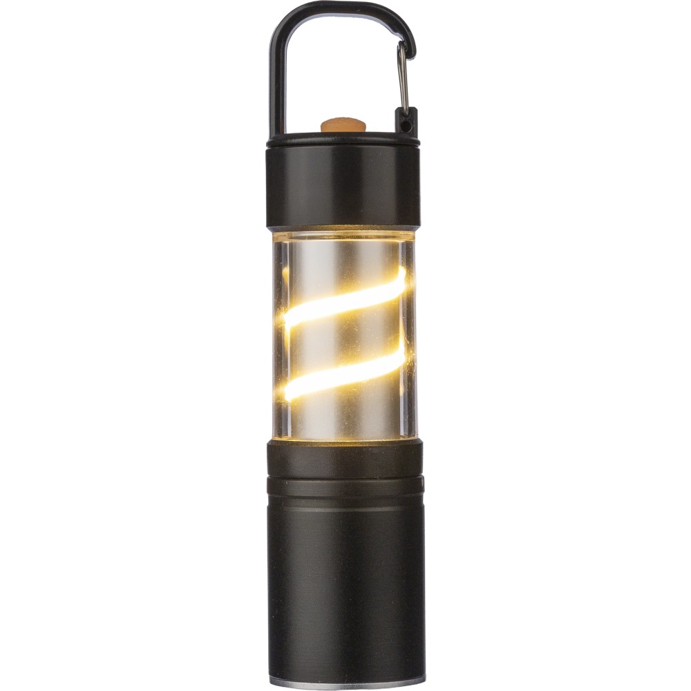 Alumínium és ötvözet COB zseblámpa ABS burkolattal, fém klipsszel és fekete karabinerrel. 3 világítási funkcióval, zoom móddal, nyomógombbal és mágneses talppal. 500 mAh-s lítium-ion akkumulátorral működik, C típusú töltéssel. 30 cm-es fekete kábellel. Egyenként csomagolva, barna kartondobozban.