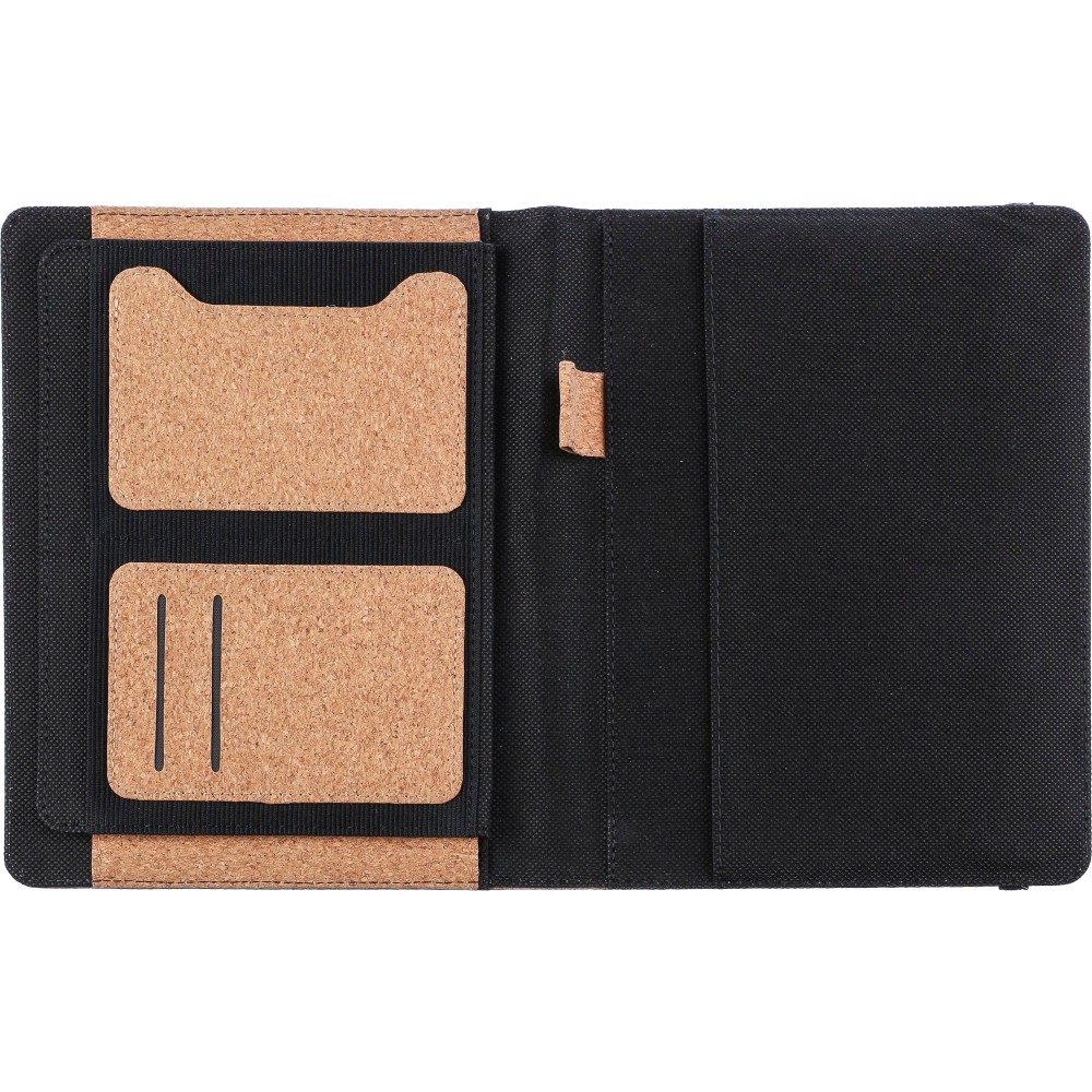 A5-ös parafa mappa belső zsebekkel, rugalmas zárópánttal, tolltartó hurokkal és kivehető A5-ös jegyzetfüzettel, amely 192 vonalas, újrahasznosított papírlapot tartalmaz (70 g/m2). Selyempapír csomagolásban.