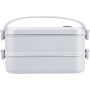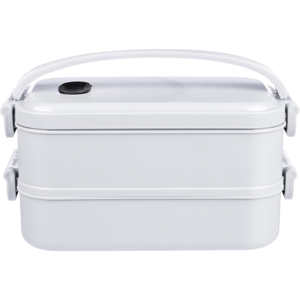 1600 ml-es PP ételtároló doboz 2 db, egyenként 800 ml-es résszel. Szilikon szeleppel a mikrohullámú sütőben történő melegítéshez, csatos záródással és szilikon hordozófüllel. Mosogatógépben tisztítható.