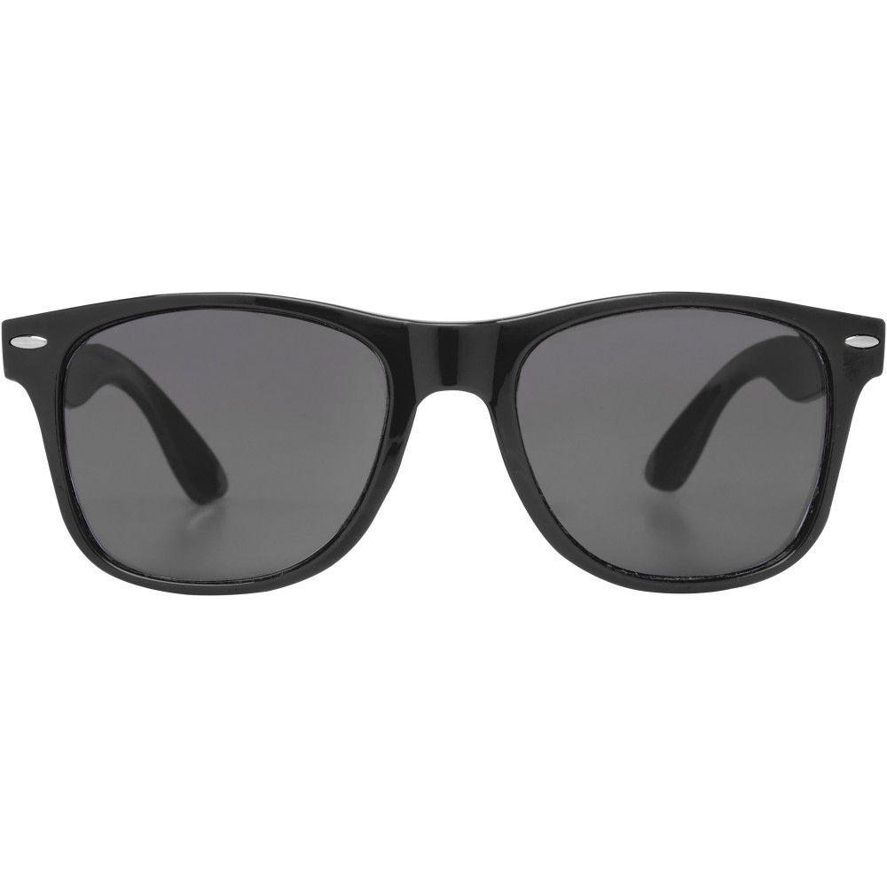 Ez a fenntartható, retro napszemüveg ideális promóciós ajándék nyári fesztiválokon, rendezvényeken vagy más napsütéses szabadtéri tevékenységek során. Az újrahasznosított PET műanyagnak köszönhetően a napszemüveg könnyű és kényelmes viselet. Ez a szemüveg megfelel az EN ISO 12312-1 szabványnak, UV400-as lencsékkel rendelkezik, amelyek 3. kategóriájúak, így tökéletes választás az erős napfény elleni védelemhez.