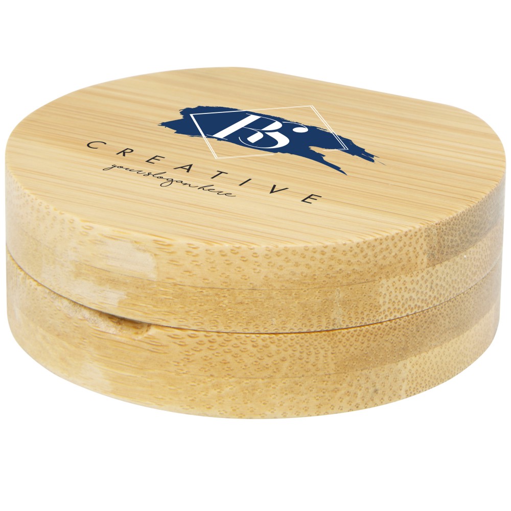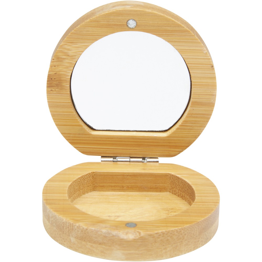 Kompakt bambusz zsebtükör utazáshoz vagy napi bőrápoláshoz vagy sminkhez. A tükör alján van egy kis rekesz az apró kiegészítők számára. A felhasznált bambusz forrása és előállítása a fenntartható szabványok szerint történik.