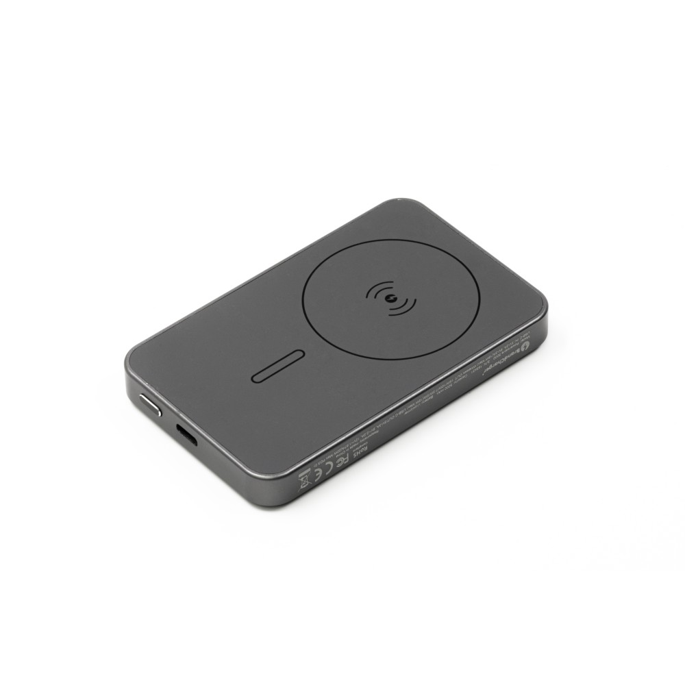 A Powerwave 5000 mAh-s powerbank vékony, alumínium unibody kialakítású, így könnyen elfér bármelyik zsebben. 5000 mAh kapacitással rendelkezik, és támogatja a 15 W-os mágneses vezeték nélküli töltést (MagSafe, Qi1 és Qi2) az egyszerű, kábel nélküli töltés érdekében. Emellett tartalmaz egy 20 W-os (PD 3.0) USB-C portot is, hogy szükség szerint tölthesse a laptopokat vagy más eszközöket. Az LCD kijelzőn látható az akkumulátor töltöttségi szintje és töltési állapota, míg az intelligens chip védelmet nyújt a túláram, a túltöltés, a túlmelegedés és a rövidzárlat ellen. Mágneses rögzítéssel tervezték a gyors és biztonságos rögzítéshez.