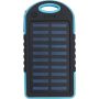 Gumírozott ABS napelemes powerbank zöld jelzőfénnyel és oldalsó elemlámpával. Két USB és egy USB-C porttal. Napelemes töltés: 5V/200mA. Input DC 5V/1A. Output DC 5V/2x1A. Kapacitás: 4.000mAh. USB kábellel.