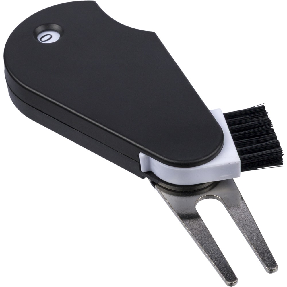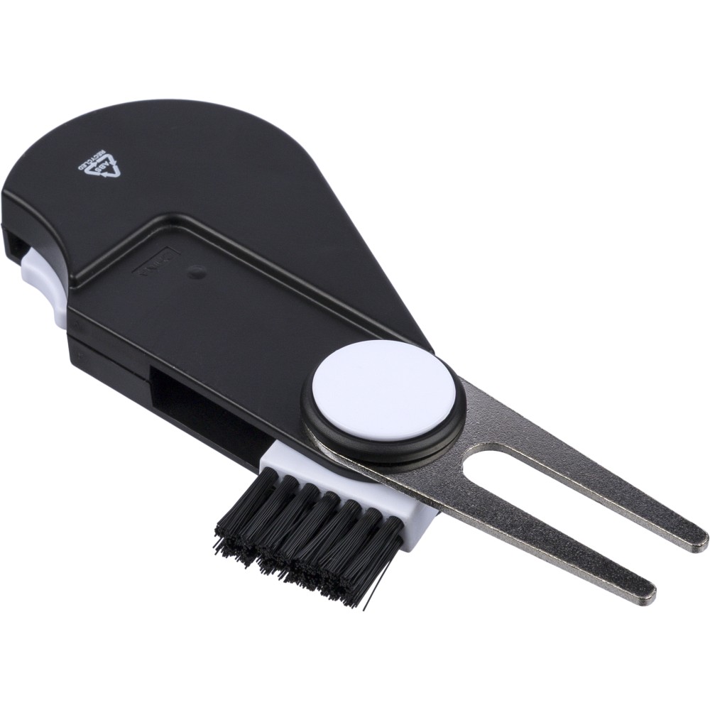 Újrahasznosított ABS anyagból készült multifunkciós golfeszköz beépített jelölővel, pitch forkkal, tisztítókefével és pontszámlálóval. A hátoldalon recycled (újrahasznosított) alapanyagra utaló logó található. Újrahasznosított polietilén tasakba csomagolva.
