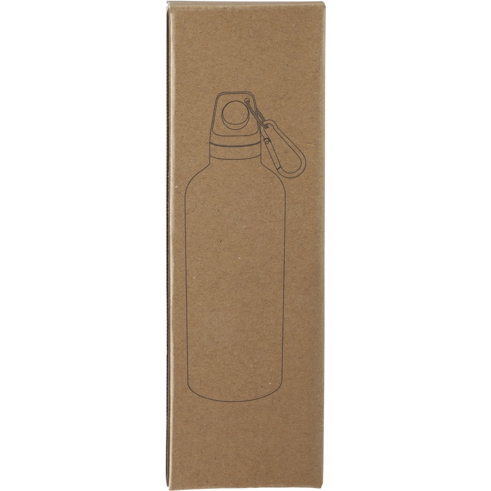 Újrahasznosított rozsdamentes acélból készült 500 ml-es palack PP kupakkal és alumínium karabinerrel. A kulacs a benne tárolt italt 8 órán át melegen, 12 órán át pedig hidegen tartja. Az ezüst szín kivételével külső felülete matt. Az újrahasznosított anyagra utaló logó a palackra van gravírozva. Mosogatógépben nem tisztítható. Csomagolása barna papírdoboz.