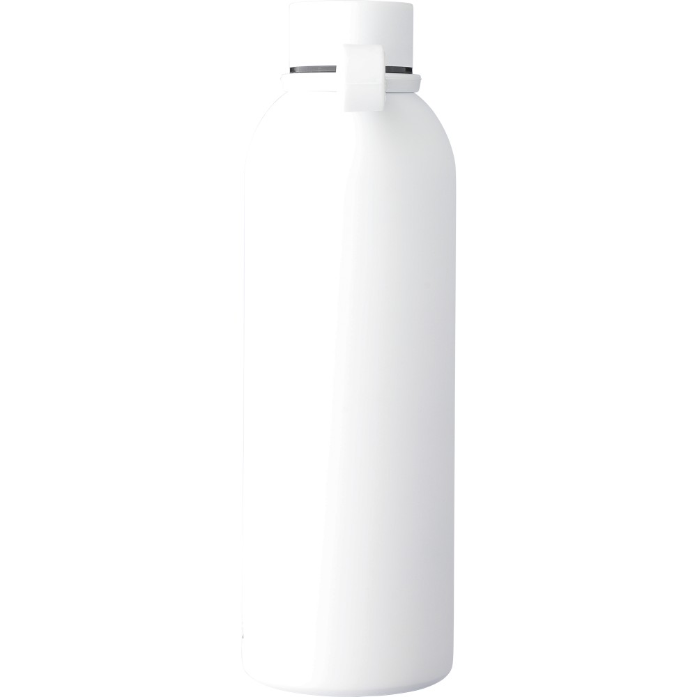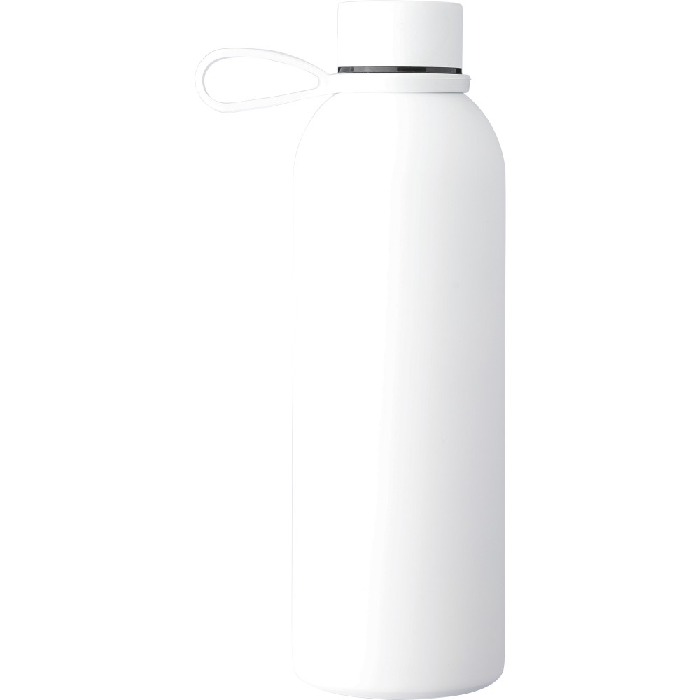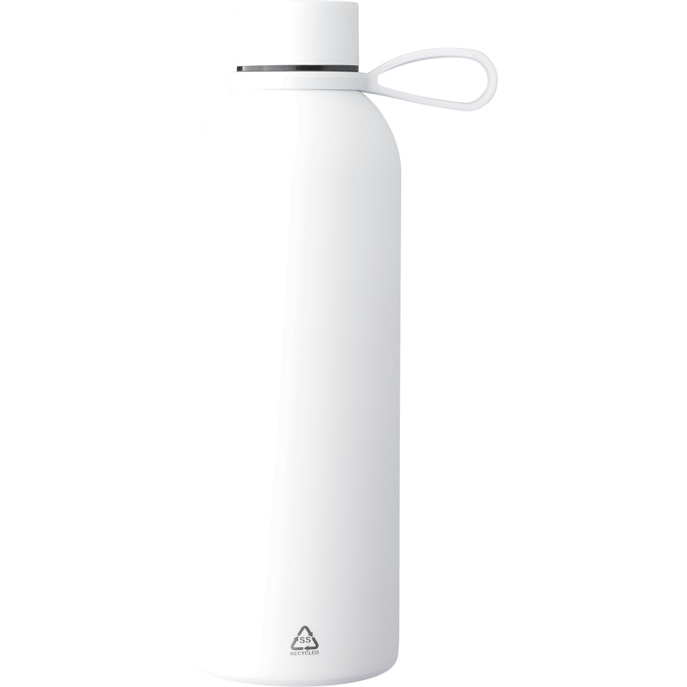Újrahasznosított rozsdamentes acélból készült duplafalú vákuumpalack, 500 ml-es. 304-es rozsdamentes acél belsővel és 201-es rozsdamentes acél külsővel. Gumírozott felülettel, fém díszítésű csavaros PP kupakkal és szilikon hordfüllel. Gravírozott, újrahasznosított logóval. Csomagolása barna papírdoboz.