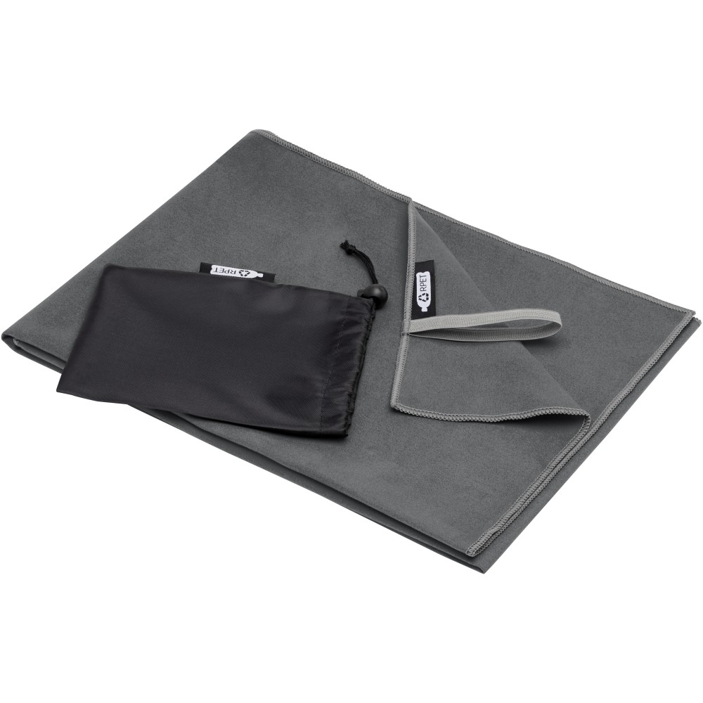 A Pieter sporttörülköző nagyon jó nedvszívó, könnyű, gyorsan szárad, az anyaga pedig tartós és rendkívül puha. Ha a törölközőt összehajtjuk és gumiszalaggal rögzítjük, kis méretűre csomagolható, így alkalmas arra, hogy magunkkal vigyük az edzőterembe, uszodába, vagy ha hátizsákos túrára, esetleg kempingezésre megyünk. A törülköző 50 x 100 cm méretű, 90% GRS újrahasznosított poliészterből és 10% nejlonból készült, és 40 °C-on mosható mosógépben. Újrahasznosított PET műanyagból készült tároló tasakkal (17 x 13 cm) szállítjuk.