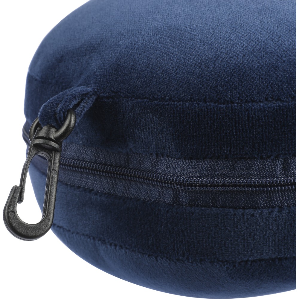 Poliészter utazópárna szett puha poliészter és PP pamut töltettel. Szemmaszkként, és párnaként is használható. PP karabinerrel.