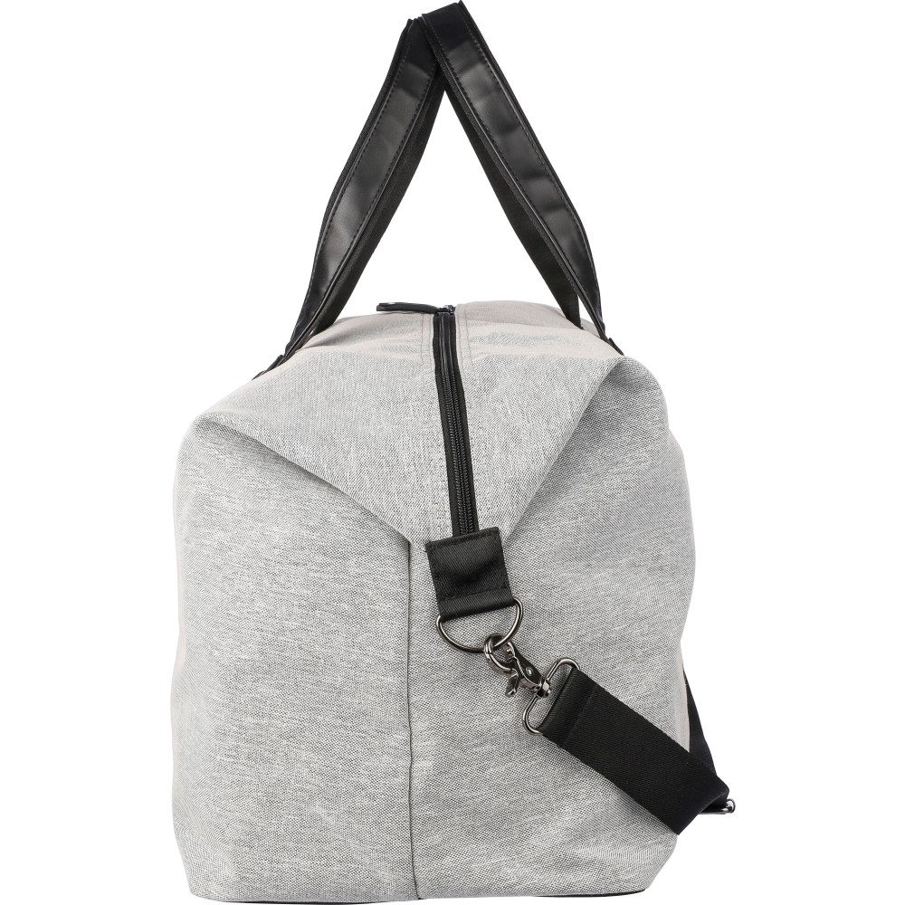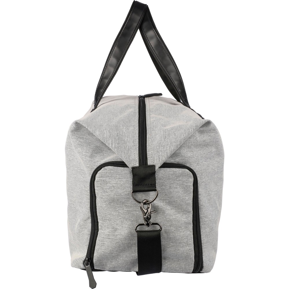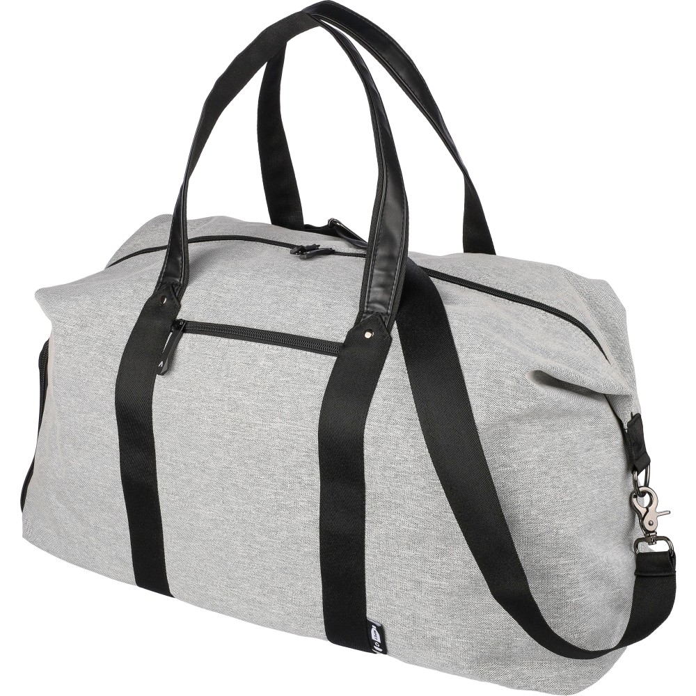 Táska műbőr részletekkel. Belső része 4 mm-es habbal és 1 mm-es PE merevítővel rendelkezik. Tartalmaz egy kis cipzáras rekeszt elöl, egy nagy cipzáras rekeszt és egy oldalsó cipőtartó zsebet. Állítható vállpánttal és két nagy fogantyúval ellátva. Az elülső részen rPET anyagra utaló címke található. Anyaga: 600D újrahasznosított poliészter.