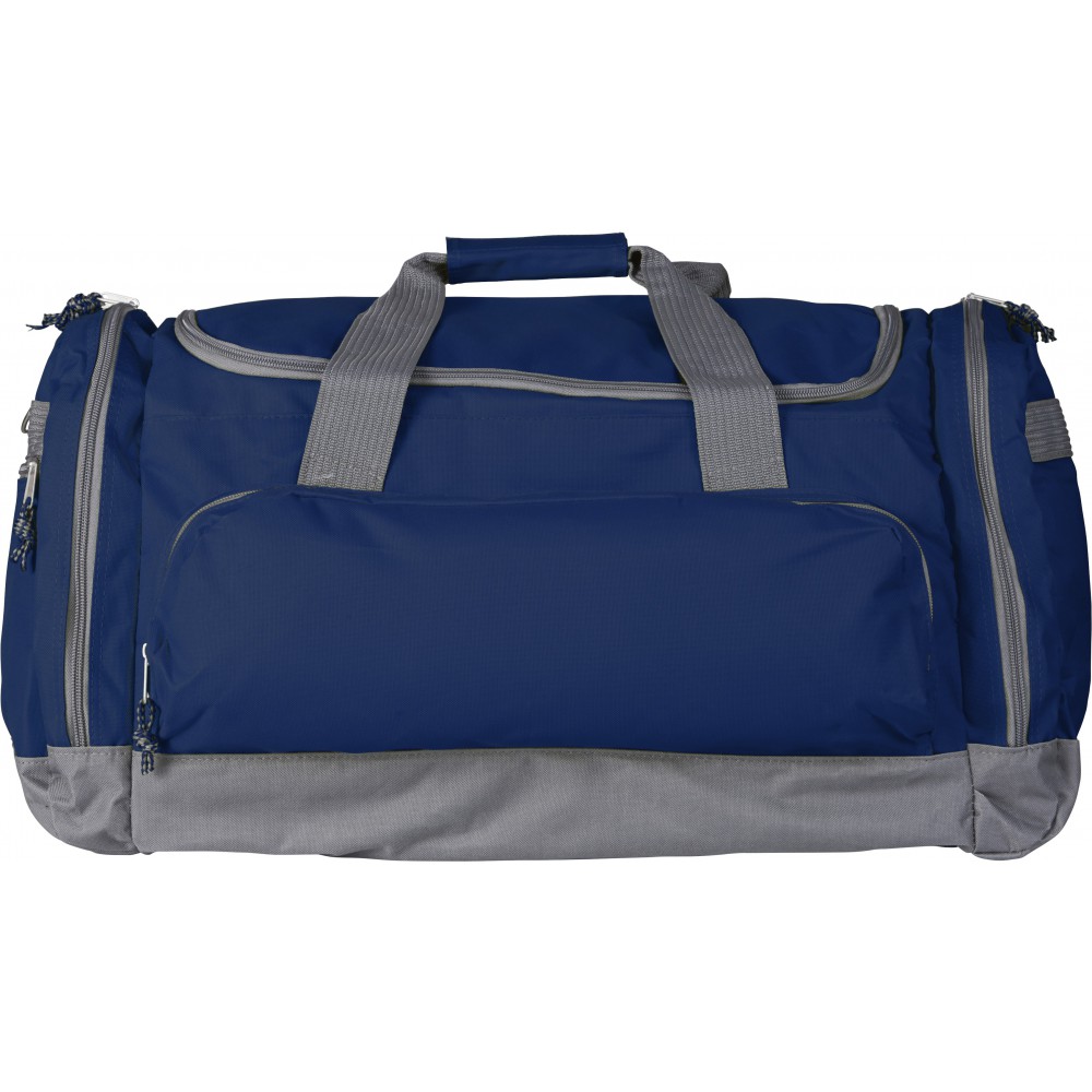 Utazótáska nagy cipzárral, oldal- és első zsebbel. 600D poliészter.