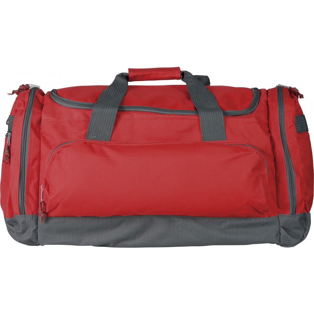 Utazótáska nagy cipzárral, oldal- és első zsebbel. 600D poliészter.