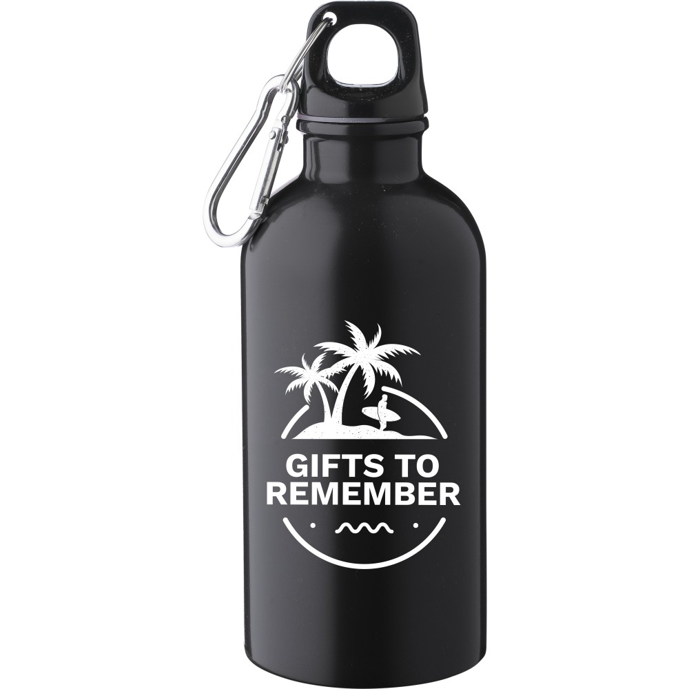 Újrahasznosított rozsdamentes acélból készült 400 ml-es szimplafalú kulacs PP kupakkal és alumínium karabinerrel. Az újrahasznosított anyagra utaló logó a palackra van gravírozva. Mosogatógépben nem tisztítható.